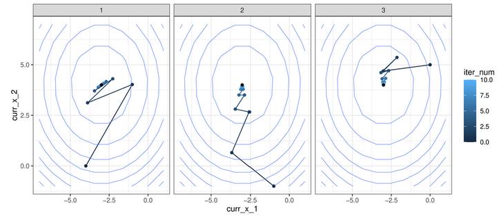 Three-node exampleThe goal of DistGD (Distributed Gradient Descent) is to efficiently optimize a global objective function expressed as a sum of a list of local objective functions belonging to different agents situated in a network via a cluster architecture like Spark. You supply a list of local objective functions, weights of the connections between the agents, initialize a vector initial values, and it takes care of the details, returning the optimal values. See the github page for more a vignette.